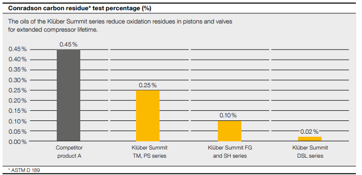 • Klüber Summit compressor oils have also proven effective for the lubrication of gears in oil-free rotary screw compressors