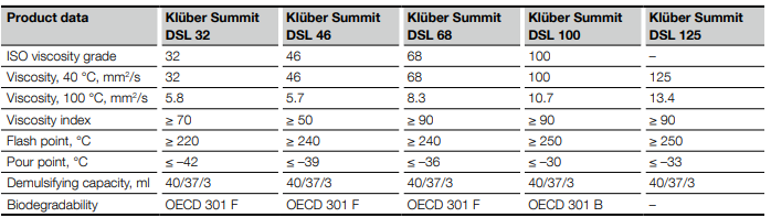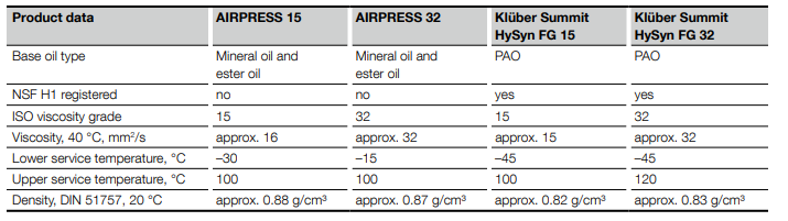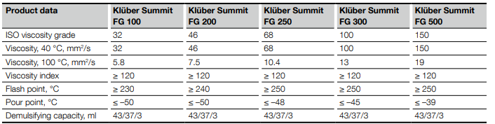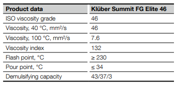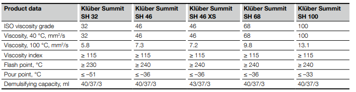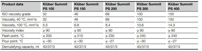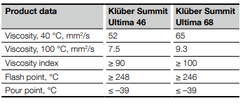 • Klüber Summit Supra 32 and Klüber Summit PS 100